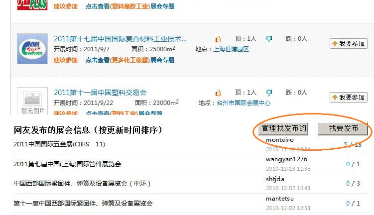 3.其他主辦如果要發(fā)布展會,請到對應(yīng)的頻道或?qū)n},在那兒有個發(fā)布展會的功能,可以隨意發(fā)布