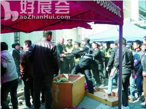 10分鐘后,兩公司工作人員發(fā)生口角,繼而爭(zhēng)吵,并發(fā)生肢體沖突,有人舉起雨篷砸向?qū)Ψ?。警方馬上上前解圍,雙方陷入僵持狀態(tài)。沖突過(guò)程中,金明創(chuàng)展公司一名工作人員被對(duì)方用辣椒水噴霧刺傷了眼睛,造成面部浮腫,還有工作人員的衣服在拉扯中撕破。