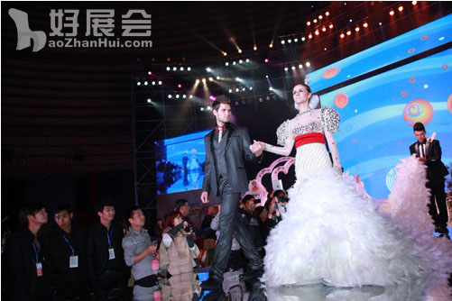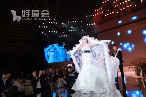 12月7日晚上,在會(huì)議閉幕式上,舉辦了2012春展婚禮婚紗潮流趨勢(shì)發(fā)布會(huì),由專業(yè)模特穿著各種新款婚紗在業(yè)界同仁面前作了展示。廣西永恒集團(tuán)還投入百萬巨資,選用真人布置實(shí)景,作了一場(chǎng)婚慶典禮的表演,讓參會(huì)的代表們領(lǐng)略了時(shí)尚婚禮、潮流裝飾的風(fēng)采,也引領(lǐng)業(yè)界將婚紗攝影與婚慶典禮、喜宴服務(wù)結(jié)婚起來,為滿足人們?nèi)罕姴粩嗵岣叩奈镔|(zhì)文化需求作出貢獻(xiàn)。
