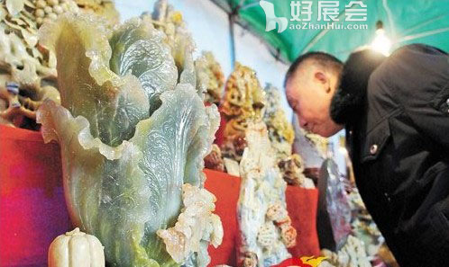 12月20日,首屆奇石玉器展目前正在市文化工藝品市場舉行,來自全國各地上百家參展商擺開龍門陣,拿出和田玉、壽山石、靈璧石、孔雀石、瑪瑙膽、水晶石、翡翠等看家寶貝爭奇斗艷,展會將持續(xù)到月底。圖為一位市民仔細(xì)研究精美的青田玉雕。