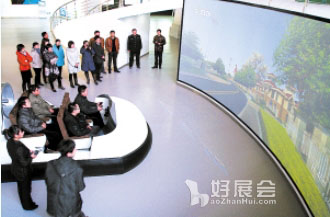 “VR”是英文Virtual Reality的縮寫,意為虛擬現(xiàn)實(shí),是借助計(jì)算機(jī)技術(shù)及硬件設(shè)備生成的視、聽、觸覺一體化的逼真虛擬環(huán)境。 “灤河VR”又名“城市漫游”虛擬駕駛,是以遷安市中心的河?xùn)|區(qū)、灤河兩岸、右岸新城為特定范圍制作成的數(shù)字建模,覆蓋面積約占中心城區(qū)的70%。“灤河VR”環(huán)幕影院包括三維弧度影幕和一個(gè)可供4人乘坐的“駕駛艙”。“駕駛艙”形如一個(gè)小型氣墊船,又像是一個(gè)大號(hào)的碰碰車。“駕駛艙”可通過駕駛?cè)丝刂品较虮P在影幕的實(shí)景畫面中虛擬行進(jìn),副駕駛位置的觸摸屏可控制陸地、水面、空中三種行進(jìn)模式。