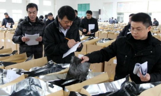 2月28日,中外客商在投標會上查看干紫菜樣品、填寫投標書。當日,江蘇省第三屆紫菜交易會在如東縣天一紫菜交易市場舉行,近31000箱干紫菜進場交易。由于受天氣環(huán)境等因素影響,今年紫菜產(chǎn)量較往年同期相比下降近50%,紫菜的單張價格上漲40%左右。這次交易會吸引了日本、美國、澳大利亞等10多個國家和山東、福建、廣東等沿海一帶地區(qū)近400位中外客商進場搶購紫菜。