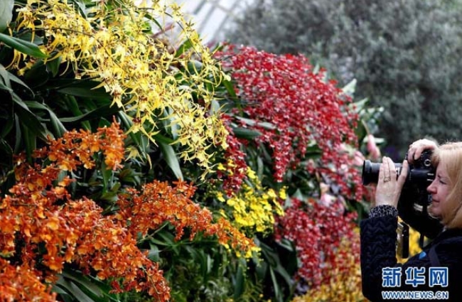 3月4日,一名觀眾在美國紐約植物園舉行的蘭花展上拍照。第十屆紐約蘭花展當(dāng)天向公眾開放。一年一度的紐約蘭花展是美國最大規(guī)模的蘭花展,此次展覽匯聚了來自世界各地的300多種近5000株珍貴蘭花,由法國著名園林藝術(shù)家帕特里克·布蘭克設(shè)計安裝的蘭花墻為最大的亮點。(來源:新華網(wǎng))