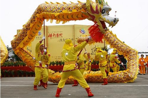 普陀山第22屆“普陀山之春”旅游節(jié)開幕 舞龍隊(duì)舞龍助興
