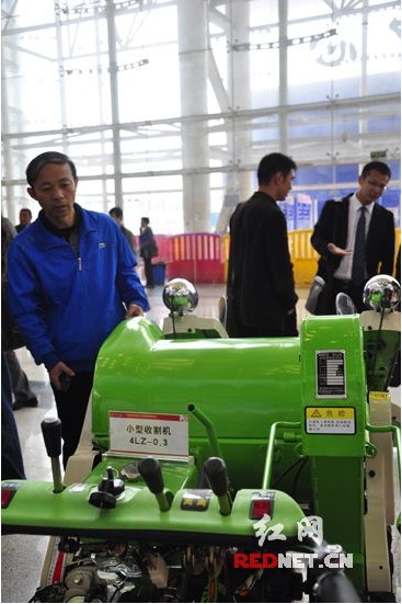2012全國農業(yè)機械展覽會在湖南國際會展中心舉行,一臺號稱全球最小最輕的收割機吸引了參觀者的目光。