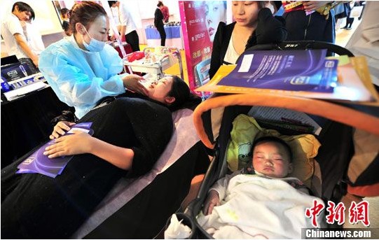 2012美博會(huì):“愛(ài)美媽媽”享免費(fèi)美容,孩子?jì)雰很噧?nèi)睡覺(jué)
