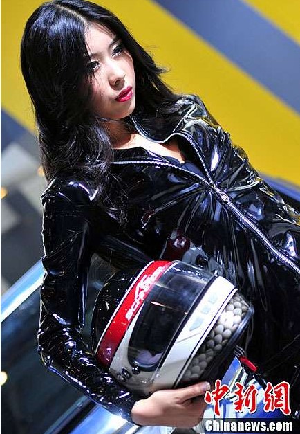 以“創(chuàng)新·跨越”為主題的2012(第十二屆)北京國(guó)際汽車展覽會(huì)于23日在北京中國(guó)國(guó)際展覽中心新館開(kāi)幕。參展商請(qǐng)來(lái)的車模與參展車輛完美結(jié)合盡顯霸氣。(來(lái)源:中新網(wǎng))