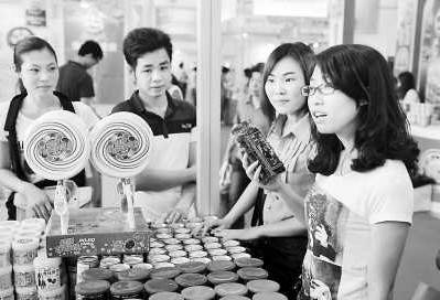 臺灣名品博覽會近日在廣西南寧市開幕,共展出2萬多個臺灣優(yōu)質(zhì)商品。圖為臺灣特色商品展柜,吸引眾多參觀者駐足。4月舉辦的大陸展會中,“臺灣板塊”最吸睛。