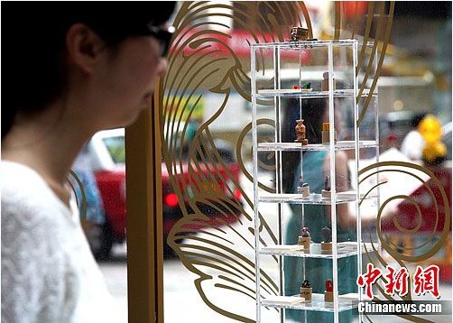 5月4日,香港市民在合和中心廣場細心觀賞“紅酒酒塞雕塑作品”展覽。當天,為期16天的“法國五月美食節(jié)”開幕,為香港市民呈現(xiàn)法式的美味佳肴外更設置酒塞雕塑作品增添趣味。(來源:中新網(wǎng))