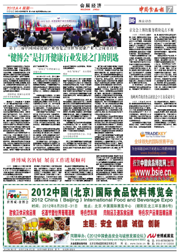 中國(guó)食品報(bào)是本屆展會(huì)的全程推廣機(jī)構(gòu),6月4日第一期關(guān)于中國(guó)食品飲料展覽會(huì)的全新面貌已展現(xiàn)會(huì)展經(jīng)濟(jì)專(zhuān)刊。第二期的報(bào)刊將在6月18日出版,版面內(nèi)容主要集中在展會(huì)的新聞信息及參展客戶(hù)的品牌推廣方面,希望已經(jīng)報(bào)名的參展客戶(hù),及時(shí)提交您的產(chǎn)品信息到組委會(huì)新聞編輯部,以便做好您展前的宣傳工作。沒(méi)有的報(bào)名的客戶(hù),也希望您能夠多多關(guān)注北京食品飲料博覽會(huì)暨特色飲料專(zhuān)題展,以及中國(guó)食品報(bào)會(huì)展經(jīng)濟(jì)版的相關(guān)信息內(nèi)容,我們希望通過(guò)食品報(bào)的權(quán)力推廣,能夠給您帶來(lái)更好的宣傳,也能給您這次參展帶來(lái)更好的效益。