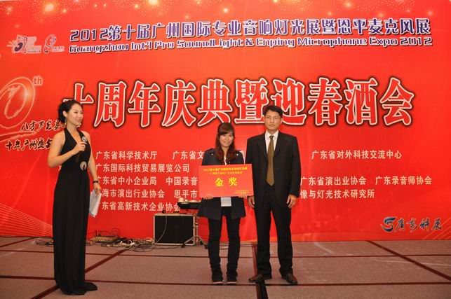 圖:2012第十屆廣州專業(yè)音響、燈光展十周年廣告語征集活動(dòng)金獎(jiǎng)得主頒獎(jiǎng)