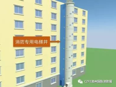 (6)消防專用電梯井的組合設置可使消防人員從樓外迅速越過火區(qū)到達上層實施救援,同時這一設置也是當前國際專家學者論證的在樓外獨立安裝消防專用電梯的熱議課題。