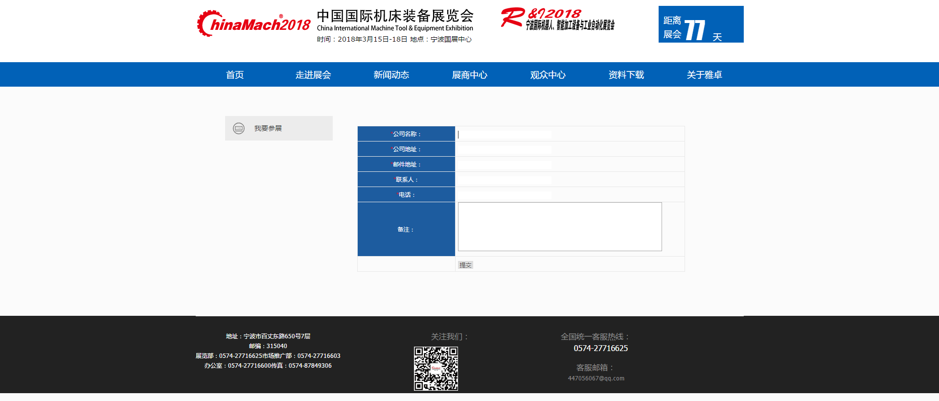 距離2018中國國際機床裝備展覽會開幕還有兩個多月時間,參展商可通過下述方式進行在線填報!