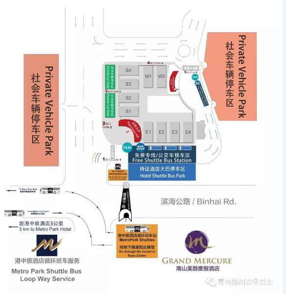 青島國(guó)際博覽中心公交線路眾多,展館四通八達(dá),展館外圍設(shè)立兩處停車場(chǎng)。