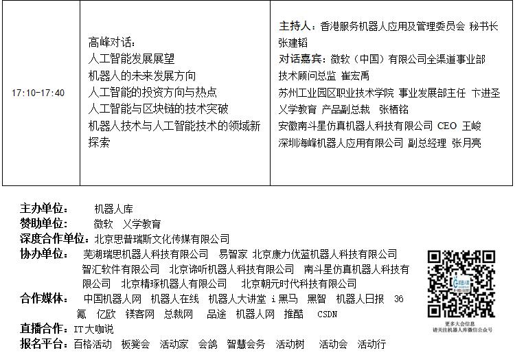 以促進(jìn)中國人工智能和機(jī)器人、智能制造產(chǎn)業(yè)的健康持續(xù)發(fā)展,提供更寬廣的人工智能、機(jī)器人、智能發(fā)展前沿技術(shù)、產(chǎn)業(yè)動態(tài)、企業(yè)經(jīng)驗,提升中國人工智能和機(jī)器人的影響力為主要目的,對于加強(qiáng)人工智能和中國機(jī)器人在學(xué)術(shù)、技術(shù)及產(chǎn)業(yè)領(lǐng)域與國內(nèi)一流學(xué)者與企業(yè)的溝通交流,加強(qiáng)技術(shù)與市場的對接,展示中國人工智能和機(jī)器人學(xué)術(shù)及產(chǎn)業(yè)發(fā)展成果,促進(jìn)我國人工智能和機(jī)器人技術(shù)的提升,增強(qiáng)中國企業(yè)的走出去將起到重要的促進(jìn)作用。