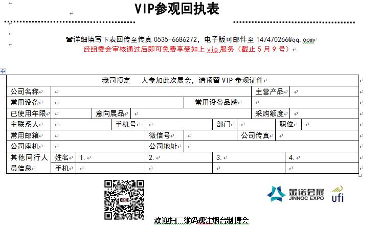 2018煙臺展參觀回執(zhí)可獲得精美禮品及VIP觀眾禮遇