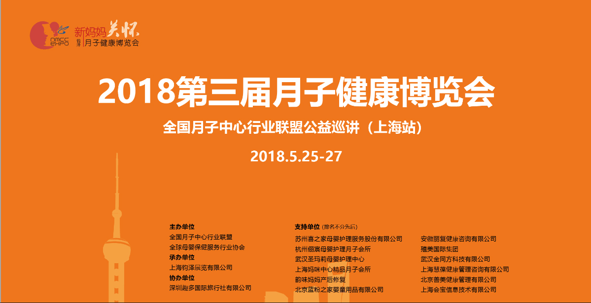 2018第三屆月子健康博覽會(huì)全國月子中心行業(yè)聯(lián)盟公益巡講(上海站)于5月25-27日在上海光大會(huì)展中心圓滿舉行