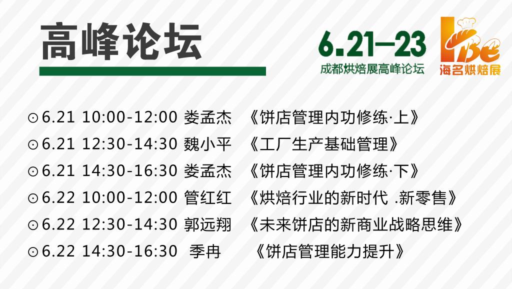 2018年第十三屆成都烘焙展急你所急,想你所想。6月21-23日成都世紀城新國際會展中心,主題烘焙論壇專為烘焙從業(yè)者量身打造,烘焙行業(yè)問題全解讀,提前預約就可獲取現(xiàn)場免費席位。在第十三屆成都烘焙展的現(xiàn)場,來自烘焙先鋒的行業(yè)金牌導師郭遠翔、管紅紅在現(xiàn)場針對餅店發(fā)展,業(yè)績提升為您解答。更有來自博尊烘焙的行業(yè)大咖導師婁孟杰老師、駐店指導老師季冉老師、生產(chǎn)管理老師魏小平老師都會齊聚,在現(xiàn)場可以就公司發(fā)展、門店管理、生產(chǎn)管理等各方面為您一站式解答。