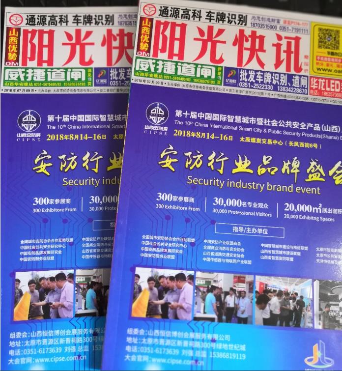 山西省發(fā)行量最大的安防行業(yè)媒體,7、8月份連續(xù)6期雜志封面廣告獨家宣傳2018第十屆山西安博會。