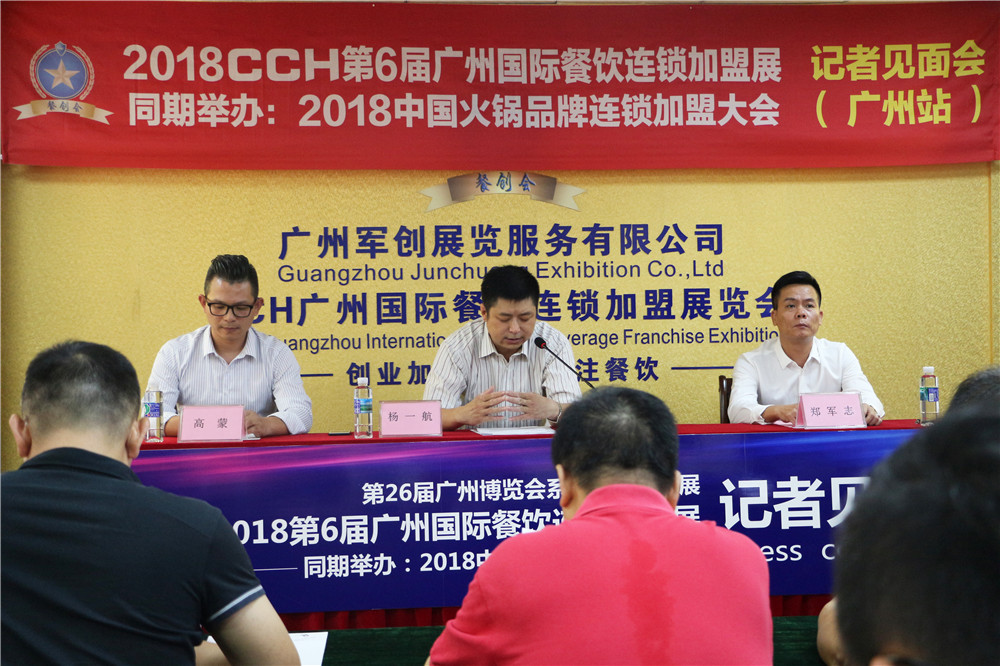 2018第6屆CCH廣州國(guó)際餐飲連鎖加盟展覽會(huì)(以下簡(jiǎn)稱:CCH廣州餐飲連鎖展),繼6月28日成都新聞發(fā)布會(huì)后,于7月18日在廣州再次舉辦記者見面會(huì)。以廣州市協(xié)作辦室展貿(mào)處楊一航處長(zhǎng)為代表的主辦方單位領(lǐng)導(dǎo)、CCH廣州餐飲連鎖展創(chuàng)始人鄭軍志先生、廣東經(jīng)濟(jì)科教頻道【今日一線】、南方日?qǐng)?bào)、廣州日?qǐng)?bào)、鳳凰新聞、中新社等重量極媒體進(jìn)行了現(xiàn)場(chǎng)報(bào)道。