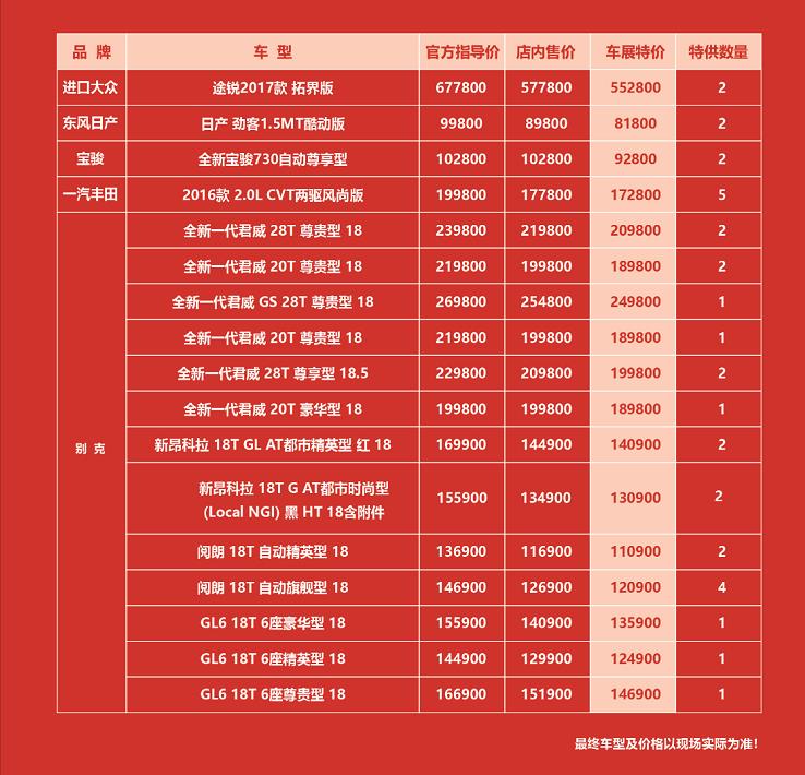 作為遵義最賣車的大型室內(nèi)車展,遵義國際車展聯(lián)合廠家、經(jīng)銷商車展放惠,讓我們看看哪個車型的降價幅度最大。只屬于遵義國際車展的特價車信息!