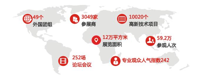 上一屆高交會(huì)總面積達(dá)12萬平方米,共有全國38個(gè)省、自治區(qū)、直轄市、計(jì)劃單列市(含香港、澳門、臺(tái)灣、新疆生產(chǎn)建設(shè)兵團(tuán))組團(tuán)、27所知名高校、來自46個(gè)國家及歐盟在內(nèi)的49個(gè)外國團(tuán)組參加了本屆高交會(huì),其中27個(gè)“一帶一路”沿線國家參展。共有來自102個(gè)國家和地區(qū)的59.2萬人次觀眾,論壇會(huì)議總場次超過252場。平均每天每個(gè)展位共接待242位專業(yè)觀眾、平均每天每個(gè)展位共接待63位有意向或有實(shí)際采購行為的采購商。共有250家海內(nèi)外媒體、1500名記者參與了深入報(bào)道
