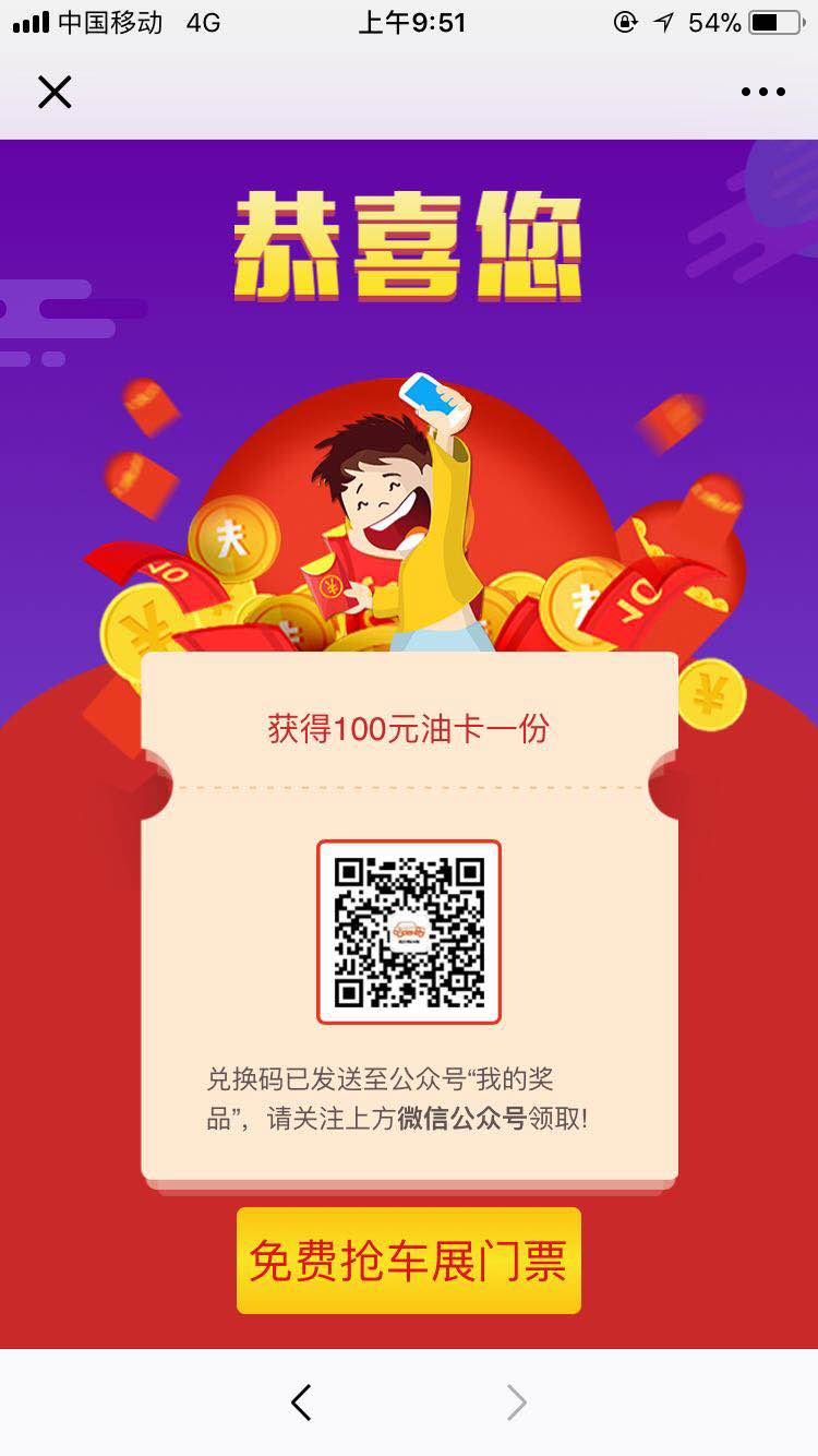 投票后抽獎獲得價值100元油卡的用戶,憑兌獎二維碼及本人有效身份證至車展現(xiàn)場兌獎處兌獎。