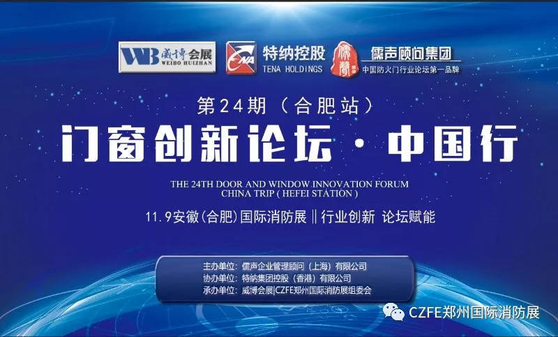 由特納集團(tuán)控股(香港)有限公司協(xié)辦,儒聲企業(yè)管理顧問(上海)有限公司、香港門窗創(chuàng)新研究院(中國)有限公司、金華市儒聲網(wǎng)絡(luò)科技有限公司主辦,威博會(huì)展|CZFE鄭州國際消防展組委會(huì)承辦的“第24期《防火門窗行業(yè)創(chuàng)新論壇.中國行》(合肥站)”于2018年11月10日在合肥濱湖國際會(huì)展中心(5號(hào)館)“11.9安徽(合肥)國際消防展”論壇區(qū)舉行,敬請關(guān)注!