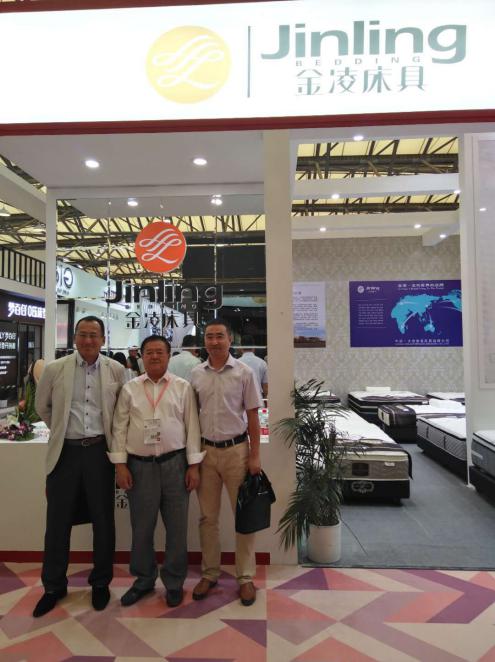 組委會負(fù)責(zé)人(右)與日本采購團組織者(左)及參展企業(yè)負(fù)責(zé)人(中),家具博覽會上合影