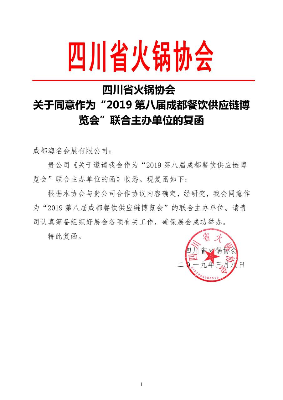 四川省火鍋協(xié)會復函