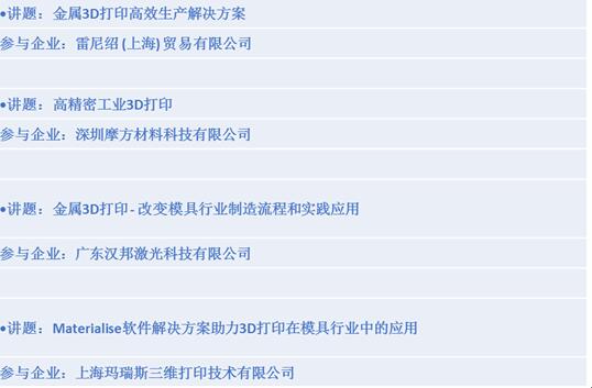 廣州國(guó)際模具展覽會(huì)研討會(huì)及中國(guó)3D產(chǎn)業(yè)技術(shù)應(yīng)用峰會(huì)將于今屆展會(huì)再度回歸。前者將深入剖析最創(chuàng)新的技術(shù)應(yīng)用及當(dāng)前的發(fā)展;后者則將由業(yè)內(nèi)領(lǐng)先公司的關(guān)鍵人物主持,分享他們就3D打印對(duì)制造業(yè)未來(lái)影響的看法。兩者合共舉辦近20場(chǎng)高端演講,為業(yè)界人士分析模具和3D打印技術(shù)方面的市場(chǎng)前景、介紹行業(yè)最新技術(shù)突破、解構(gòu)行業(yè)趨勢(shì)及機(jī)遇。部份已確認(rèn)的講題包括: