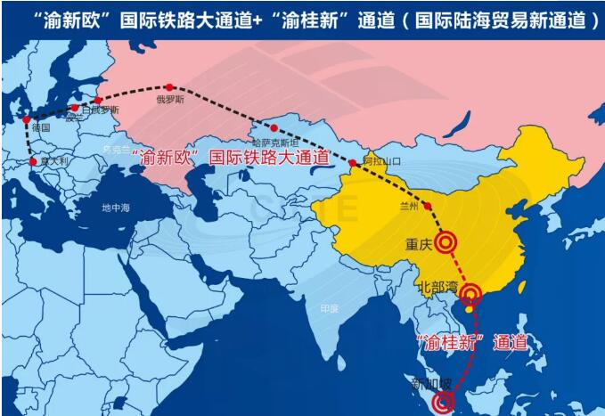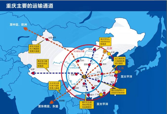 重慶是西部大開發(fā)的重要戰(zhàn)略支點(diǎn),是“一帶一路”和長江經(jīng)濟(jì)帶的聯(lián)結(jié)點(diǎn)。重慶向東有長江黃金水道、向西有中歐班列(重慶)、向南有“國際陸海貿(mào)易新通道”、向北有“渝滿俄”班列,立足內(nèi)陸、面向國際;