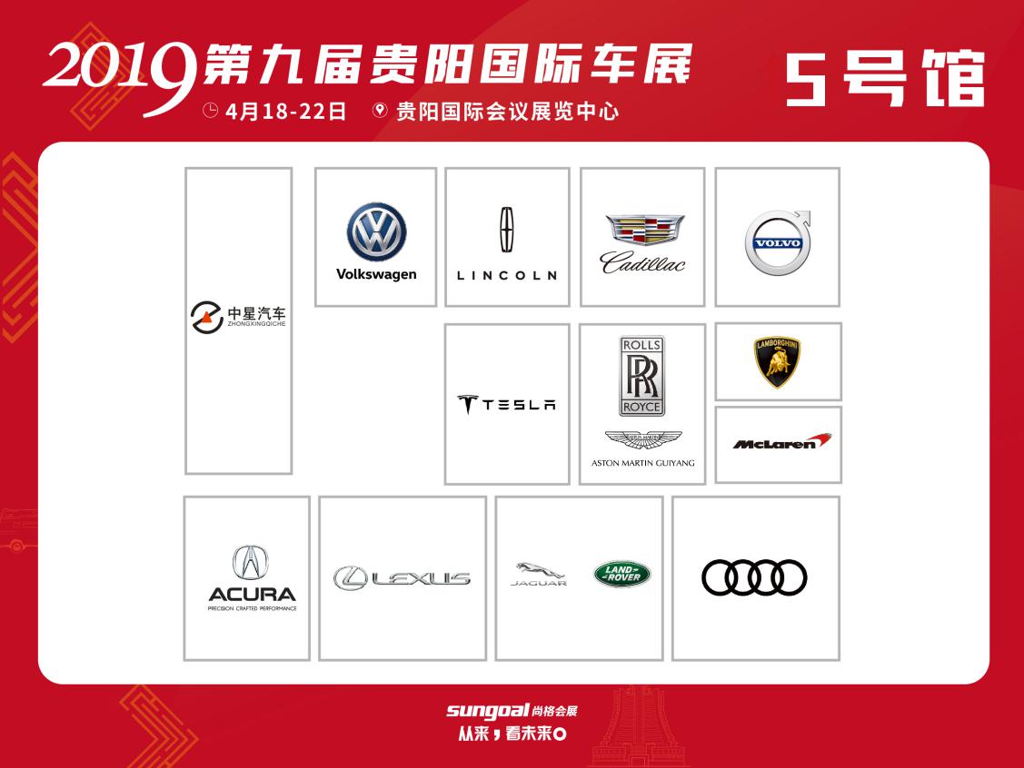 5號館(按順時針方向):中星汽車、進(jìn)口大眾、林肯、凱迪拉克、沃爾沃、蘭博基尼、邁凱倫、勞斯萊斯、阿斯頓馬丁、特斯拉、奧迪、路虎、捷豹、雷克薩斯、謳歌