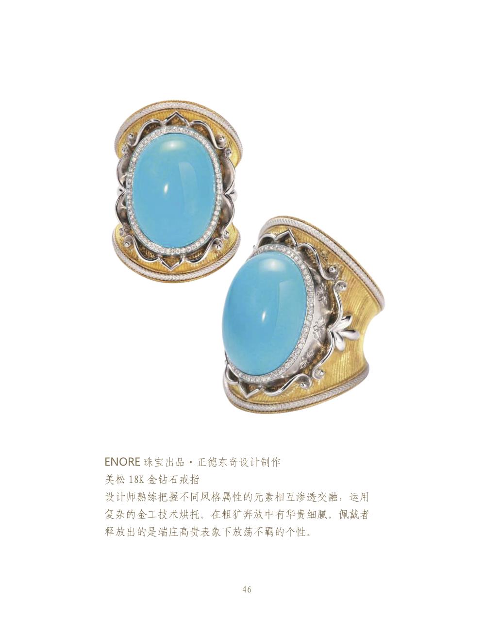 設(shè)計(jì)師以粗獷有力的金屬線條和明亮溫暖的配石色彩,恰到好處的迎合了大師雕刻作品。整件作品完美演繹出雕刻作品與金工鑲嵌的和諧融洽。配以繁復(fù)華麗的鑲嵌工藝。獲得第十屆中國上海玉石雕刻“玉龍獎(jiǎng)”銀獎(jiǎng)。