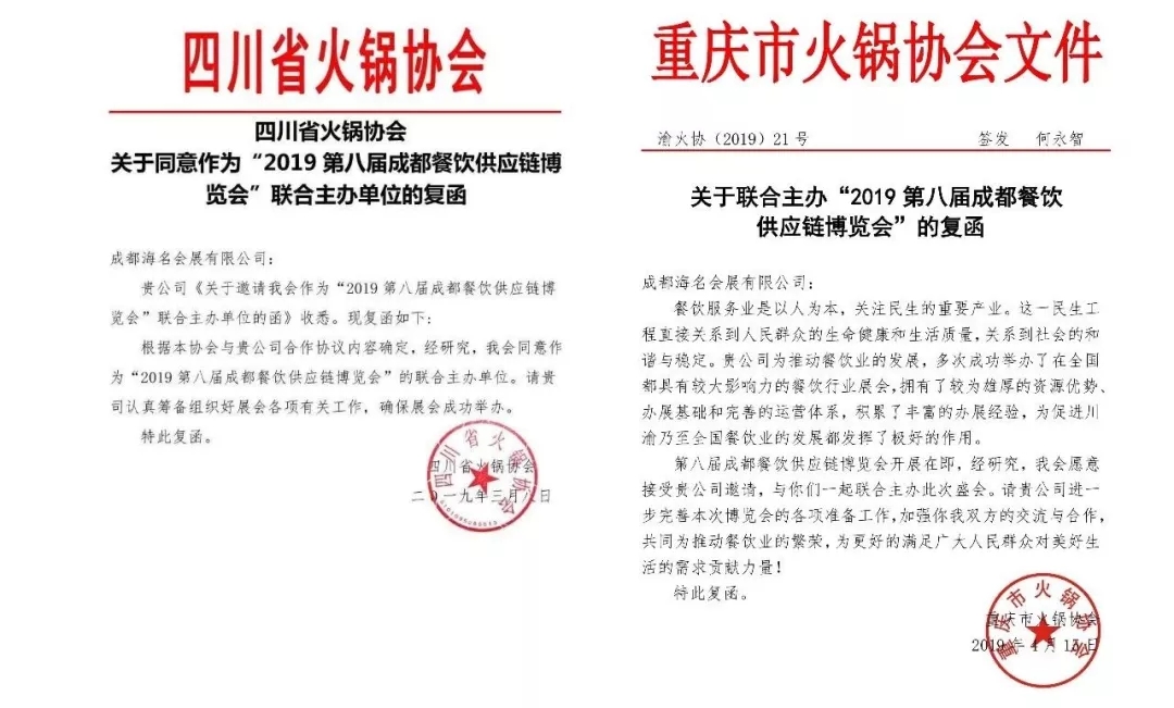 【四川省火鍋協(xié)會、重慶市火鍋協(xié)會 復函】