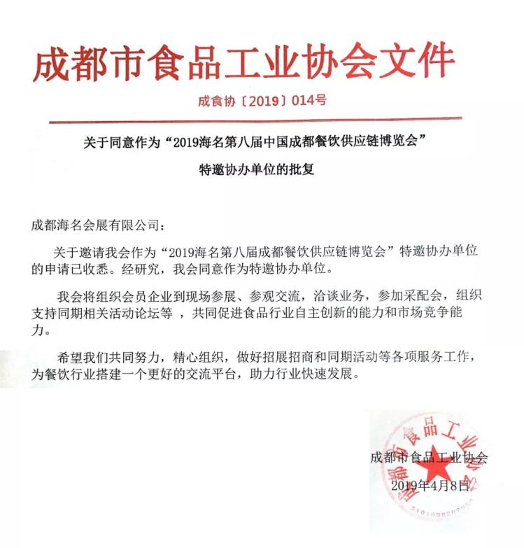 【成都市食品工業(yè)協(xié)會 復函】