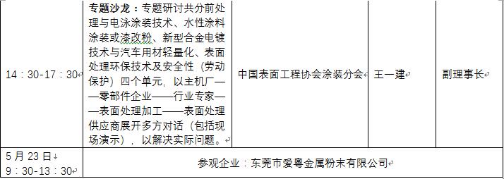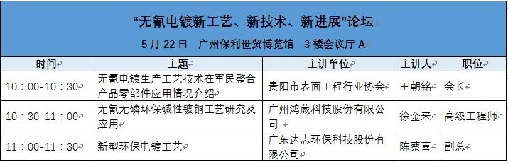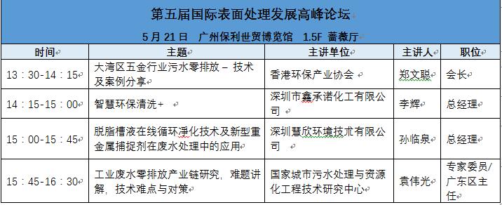 會(huì)議與展覽會(huì)深度相結(jié)合歷來是廣州國際表面處理展覽會(huì)的一大特色,本屆展會(huì)將有70場(chǎng)次國際性論壇、行業(yè)會(huì)議、技術(shù)研討會(huì)在同期舉辦,最新最前沿技術(shù)助力用戶企業(yè)最大限度地創(chuàng)造產(chǎn)品價(jià)值。部分會(huì)議及議程如下: