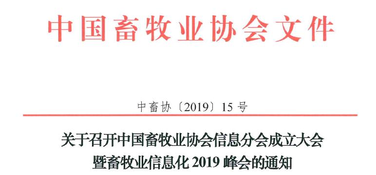 關(guān)于召開中國畜牧業(yè)協(xié)會信息分會成立大會暨畜牧業(yè)信息化2019峰會的通知