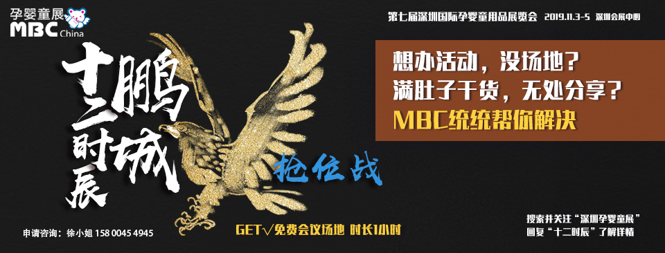 2019年11月3-5日連續(xù)舉辦七屆的MBC深圳孕嬰童展將在鵬城與大家見面!MBC作為專業(yè)的母嬰行業(yè)資源整合平臺,也將貢獻(xiàn)自己的一份力量。將為MBC 2019已參展母嬰企業(yè)或是母嬰行業(yè)大咖級人物免費(fèi)提供活動舉辦場地或是干貨分享環(huán)節(jié),時長1小時。我們來搭臺,您們來唱戲!MBC深圳孕嬰童展與你一起助力中國母嬰產(chǎn)業(yè)品質(zhì)升級!