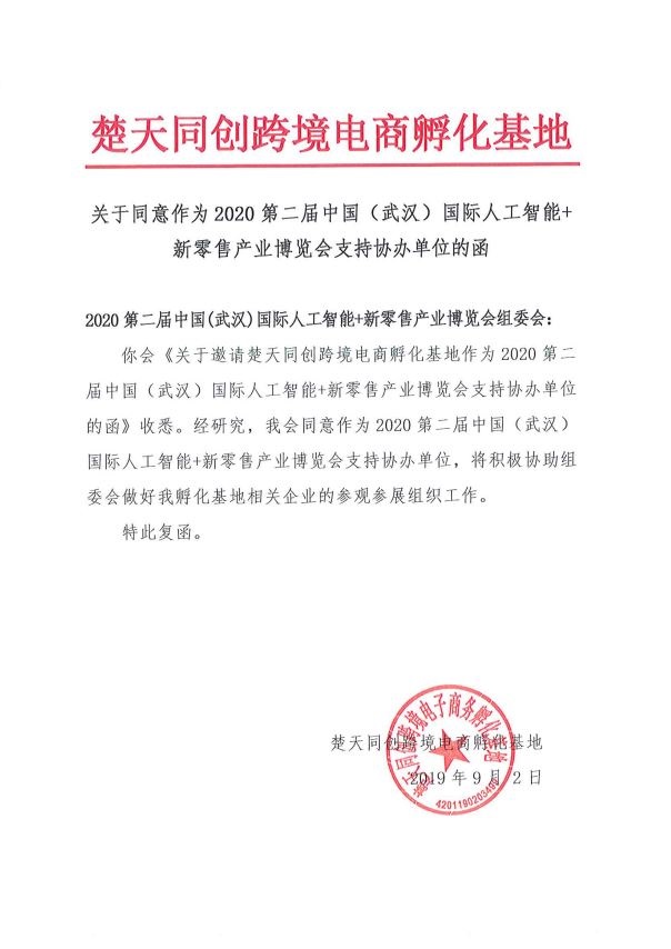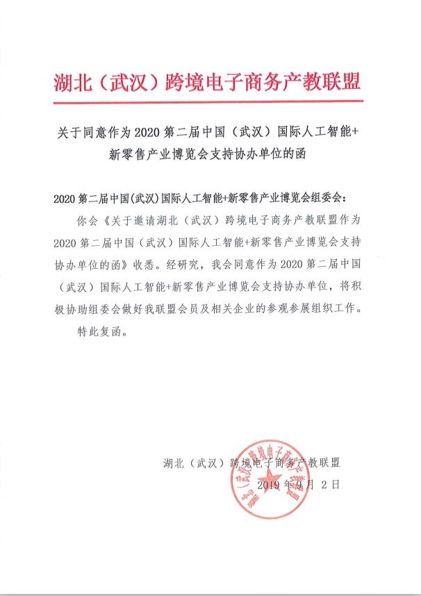組委會(huì)消息,湖北省楚商聯(lián)合會(huì)跨境電商分會(huì)、湖北(武漢)跨境電子商務(wù)產(chǎn)教聯(lián)盟和楚天同創(chuàng)跨境電子商務(wù)孵化基地接受邀請(qǐng),支持協(xié)辦2020第2屆中國(guó)(武漢)國(guó)際人工智能+新零售產(chǎn)業(yè)博覽會(huì)(簡(jiǎn)稱:武漢AI新零售展)。三大行業(yè)機(jī)構(gòu)將積極協(xié)助組委會(huì)做好協(xié)會(huì)會(huì)員及相關(guān)企業(yè)的參觀參展組織工作,共同搭建采購(gòu)交流平臺(tái),推動(dòng)行業(yè)健康發(fā)展!