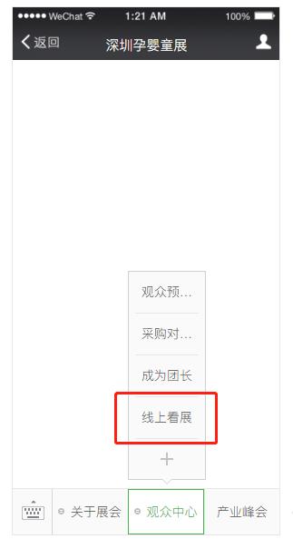 一.關(guān)注公眾號(hào)【深圳孕嬰童展】,點(diǎn)擊菜單-觀眾中心-線上看展