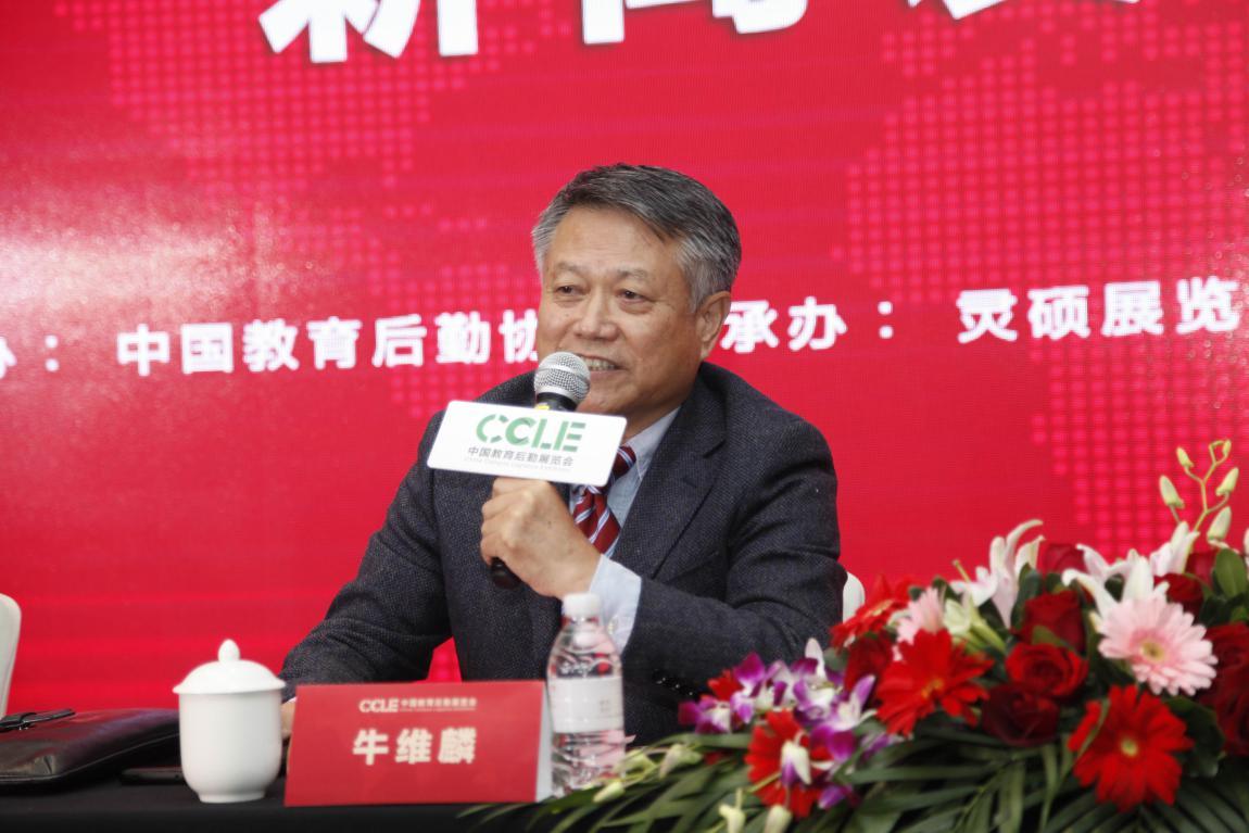 (中國教育后勤協(xié)會常務(wù)副會長兼秘書長牛維麟致辭)