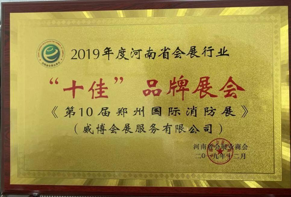 威博會展旗下舉辦的“CZFE第10屆鄭州國際消防展”被評為2019年度河南省會展行業(yè)(十佳)品牌展會!這是繼威博會展在摘得2019年中國會展品牌大獎(年度區(qū)域最具影響力會展品牌項目)桂冠后再次獲得省內(nèi)行業(yè)主管部門及業(yè)內(nèi)專家的高度認可!