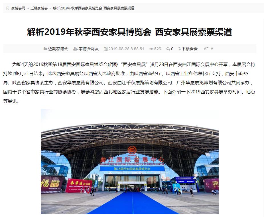 每年展會(huì)期間,相關(guān)媒體也會(huì)對(duì)展會(huì)盛況進(jìn)行全方位、高覆蓋式的宣傳報(bào)道。《中國(guó)家具報(bào)道》、《中國(guó)經(jīng)貿(mào)·家具中國(guó)》、《家居世界》、《華東家具》、《家居人物》、《家具酷》、香河家具城、家具迷、家具專區(qū)網(wǎng)、中國(guó)旅游報(bào)、中國(guó)信息報(bào)、陜西日?qǐng)?bào)、西安晚報(bào)、華商報(bào)以及陜西各電視臺(tái)等,都可見(jiàn)西安家具展的身影,其熱度可見(jiàn)一斑。
