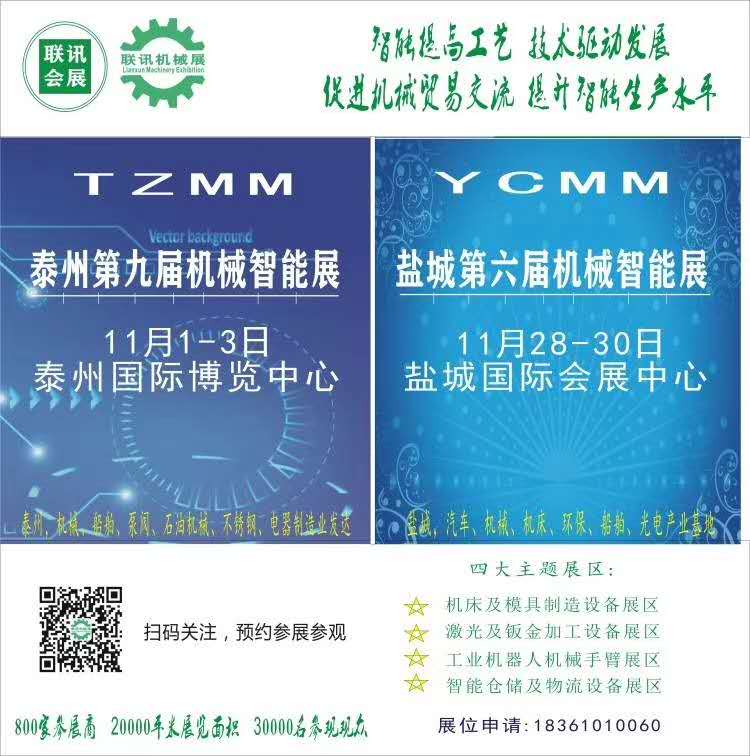 “2020中國泰州第九屆國際機械與智能制造展覽會“將于2020年11月1-3日在泰州國際博覽中心盛大舉行!作為2020下半年蘇中蘇北地區(qū)唯一大型機械行業(yè)展會,是您開發(fā)高速發(fā)展的蘇中市場首選展會平臺。我們2019年的機械展有約350 名參展商,800個展位和25000名采購商,吸引了包括美國哈斯,美國哈挺,美國辛辛那提,韓國斗山,日本發(fā)那科,日本津上,臺灣協(xié)鴻,海天精工,南通科技,力星激光,嘉泰激光,漢鋒自動化,大華激光,捷豹空壓機等眾多知名品牌。在我們的不懈努力下,2020年的展會預計有約400家參展商,1000個展位和近30000名的采購商,是您不容錯過的工業(yè)盛宴!