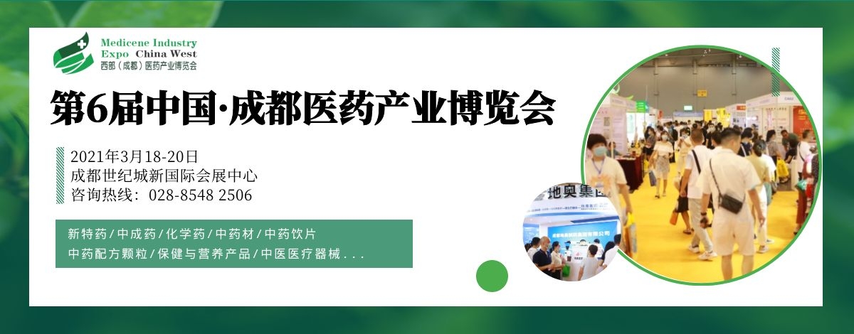 2021年3月18-20日,第6屆中國·成都醫(yī)藥產(chǎn)業(yè)博覽會將在成都世紀(jì)城新國際會展中心隆重舉行,再創(chuàng)醫(yī)健行業(yè)盛會!