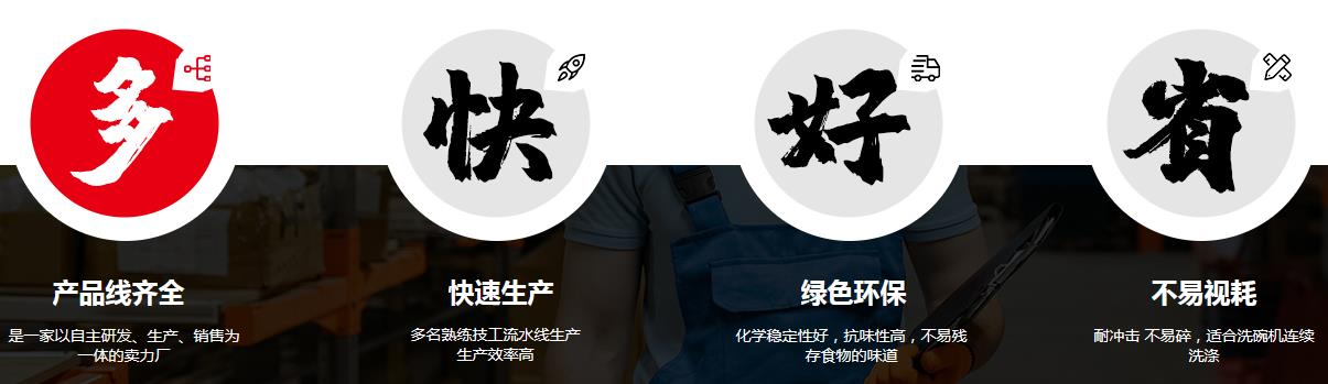 1、作為國內(nèi)密胺餐具的優(yōu)秀生產(chǎn)企業(yè),工廠所有的產(chǎn)品從設(shè)計、原料、生產(chǎn)工藝、市場銷售-直以“視質(zhì)量為生命,以服務(wù)創(chuàng)市場”為原則。