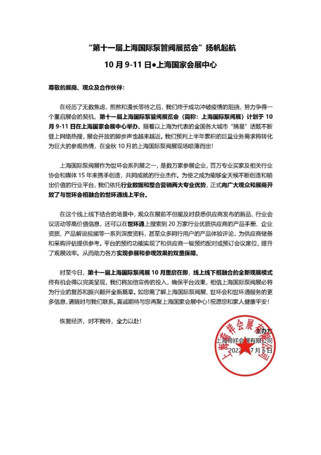 “疫”別多日,全力以“復(fù)”丨2022上海國(guó)際泵閥展定檔10月