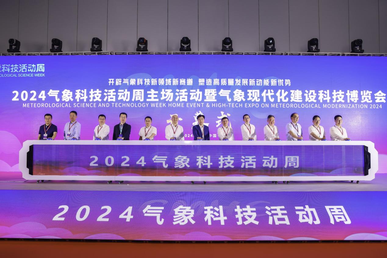 隨后,與會(huì)嘉賓代表上臺(tái)啟動(dòng)按鈕,共同宣布2024氣象科技活動(dòng)周正式啟動(dòng),2024氣象現(xiàn)代化建設(shè)科技博覽會(huì)盛大開幕!